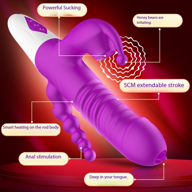 V-shaped suction vibrating dildo with anal beads included.